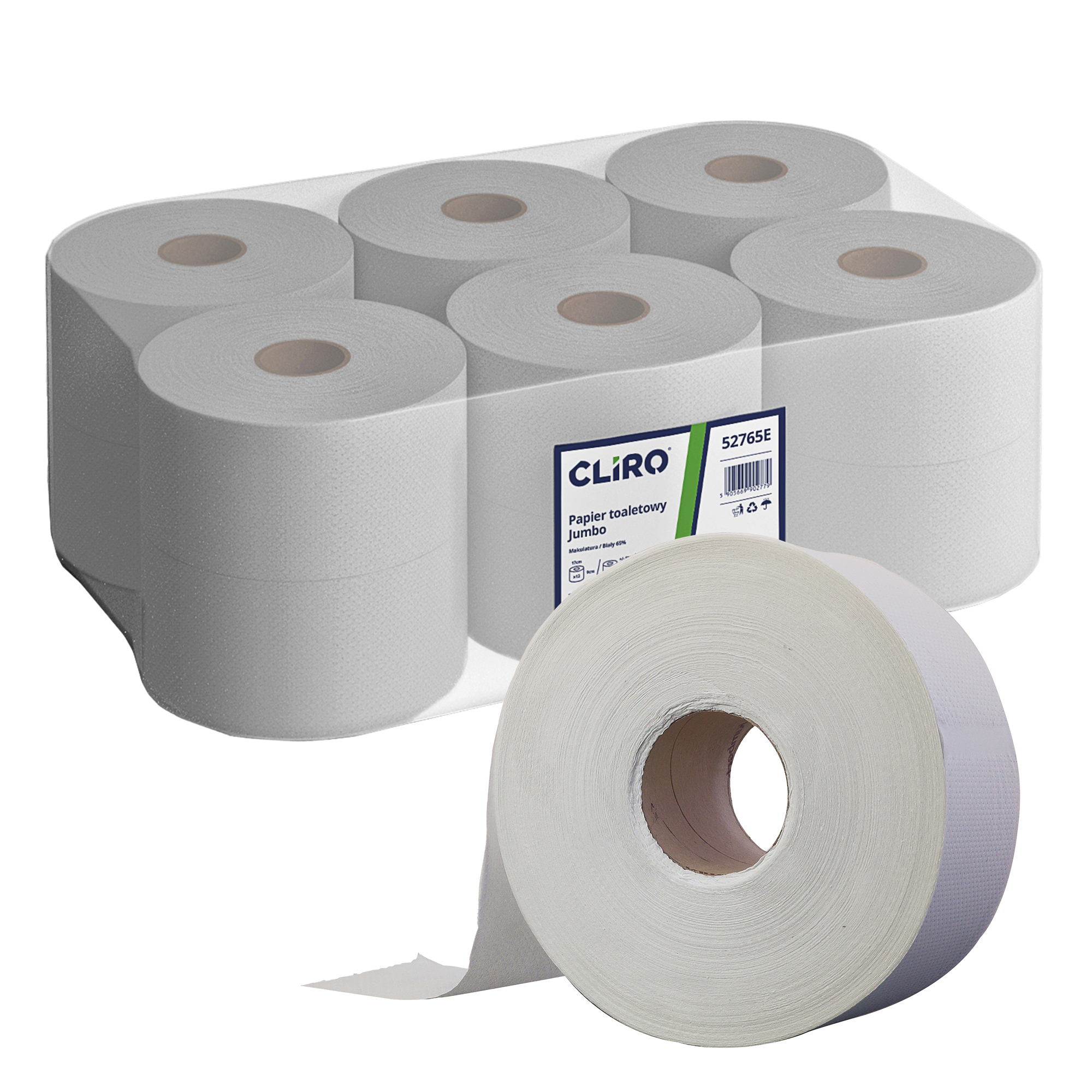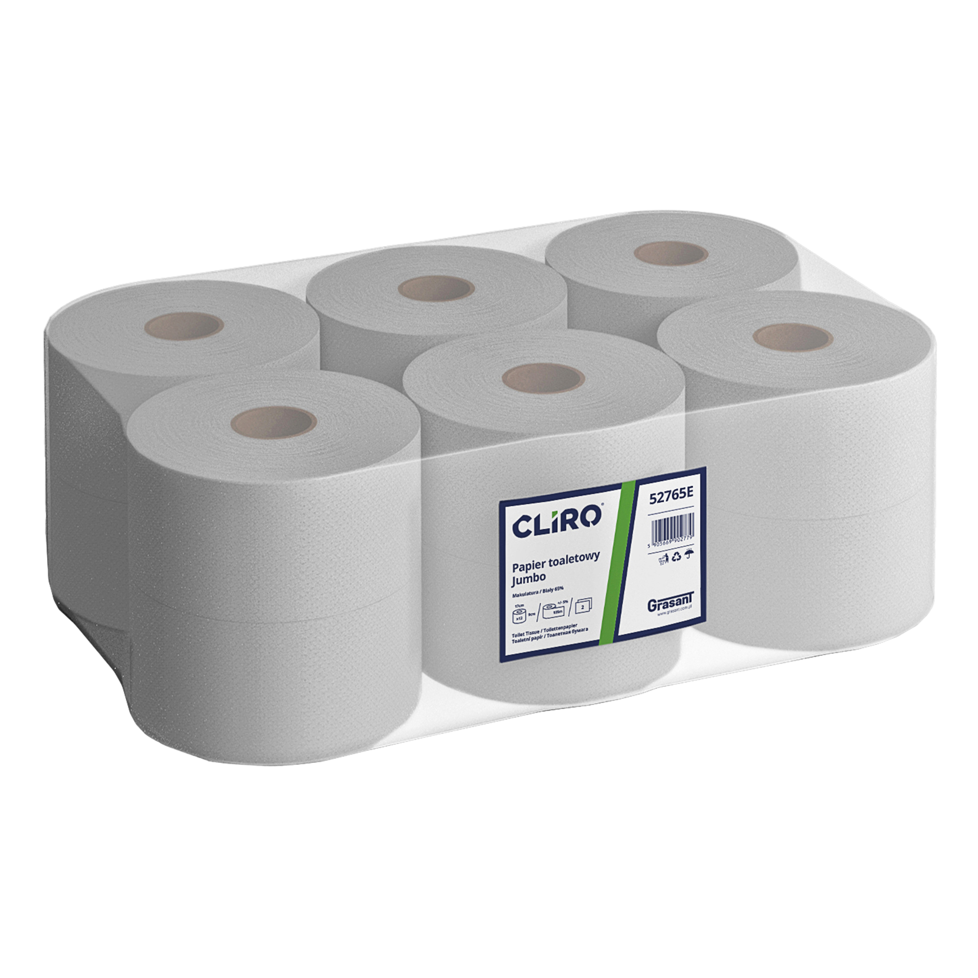 Papier toaletowy Jumbo, Makulatura 65% 12 sztuk CLIRO