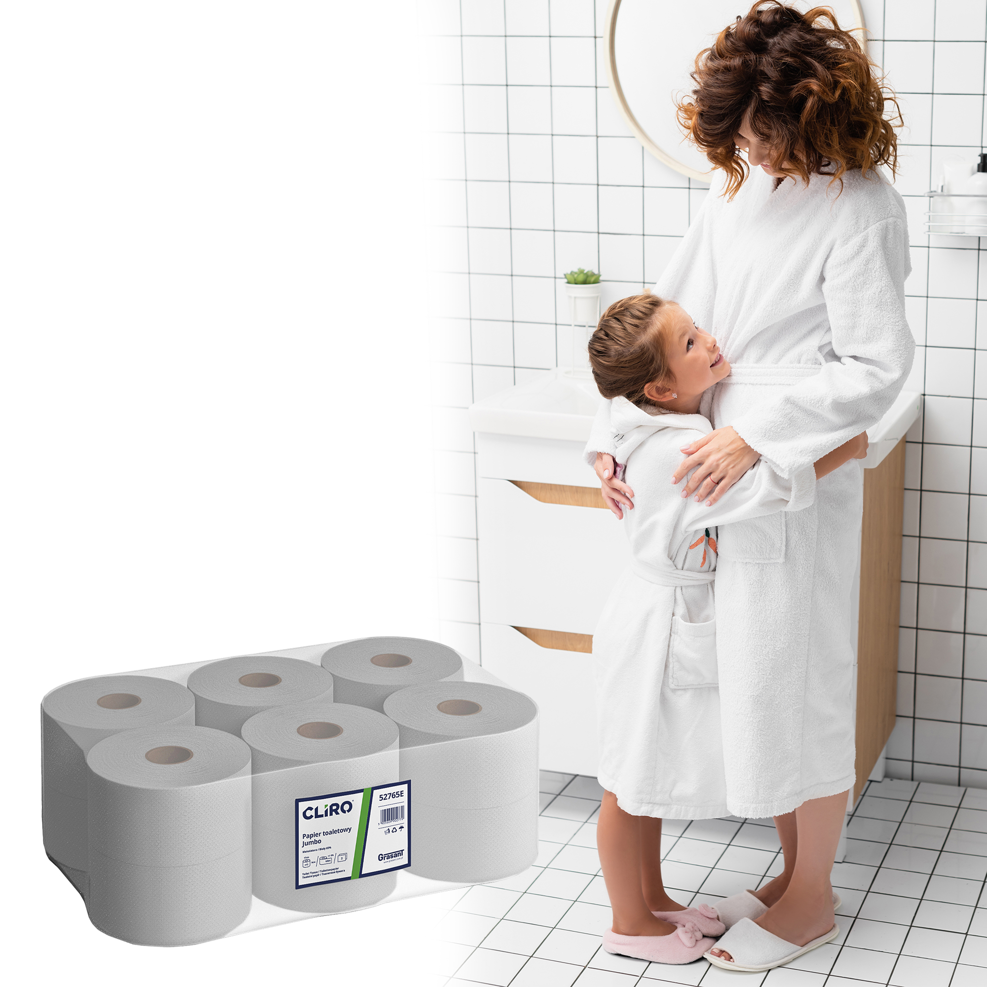 Papier toaletowy Jumbo charakteryzuje się większym rozmiarem rolki, co za tym idzie większa wydajnością.