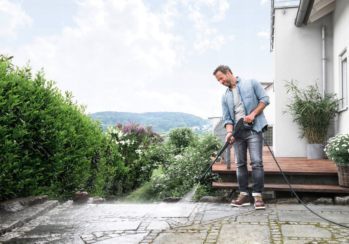 Myjka K 5 Basic Brush idealnie sprawdzi się podczas prac porządkowych wokół domu i w ogrodzie, do regularnego mycia: